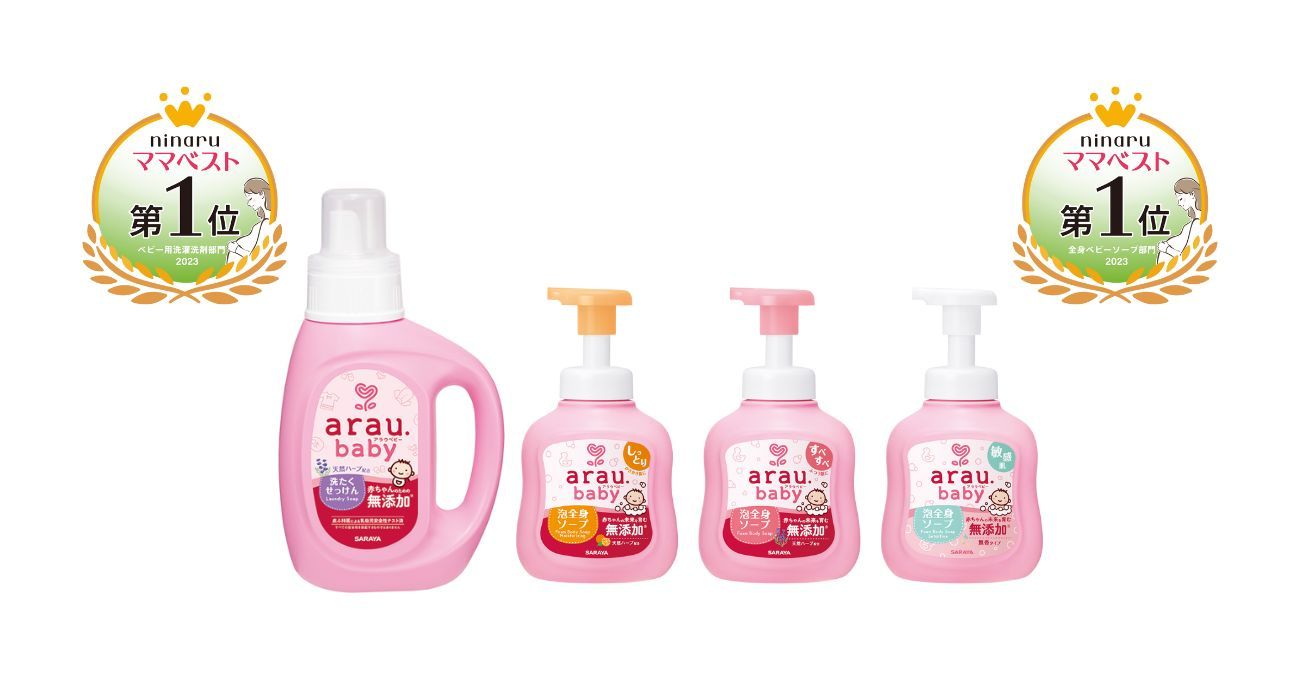 arau.baby’s Laundry Soap and Foam Body Soap were selected as winners in the “ninaru Mama Best 2023” awards, which reward products that are liked and cover the needs of moms in Japan. Japanese mothers who use the pregnancy application “ninaru” and the childcare application “ninaru baby” are asked to complete a questionnaire on their recommended goods and score their satisfaction with the products they have used. In 2023, arau.baby Laundry Soap won the first position in the laundry detergent category for the first time, while arau.baby Foam Body Soap also won No. 1, in the baby soap category, for the fourth consecutive year.