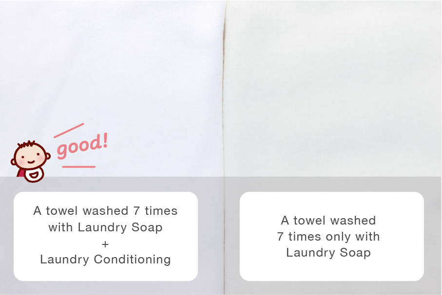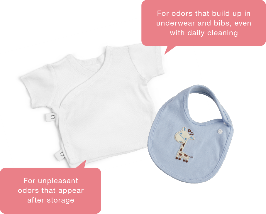 Newborn babies have active metabolisms and produce more sebum than we often realize. This can build up in fabrics over time. Our Laundry Conditioner helps effectively remove odors that ordinary washing can leave behind, such as those caused by sebum stains or long-term storage.